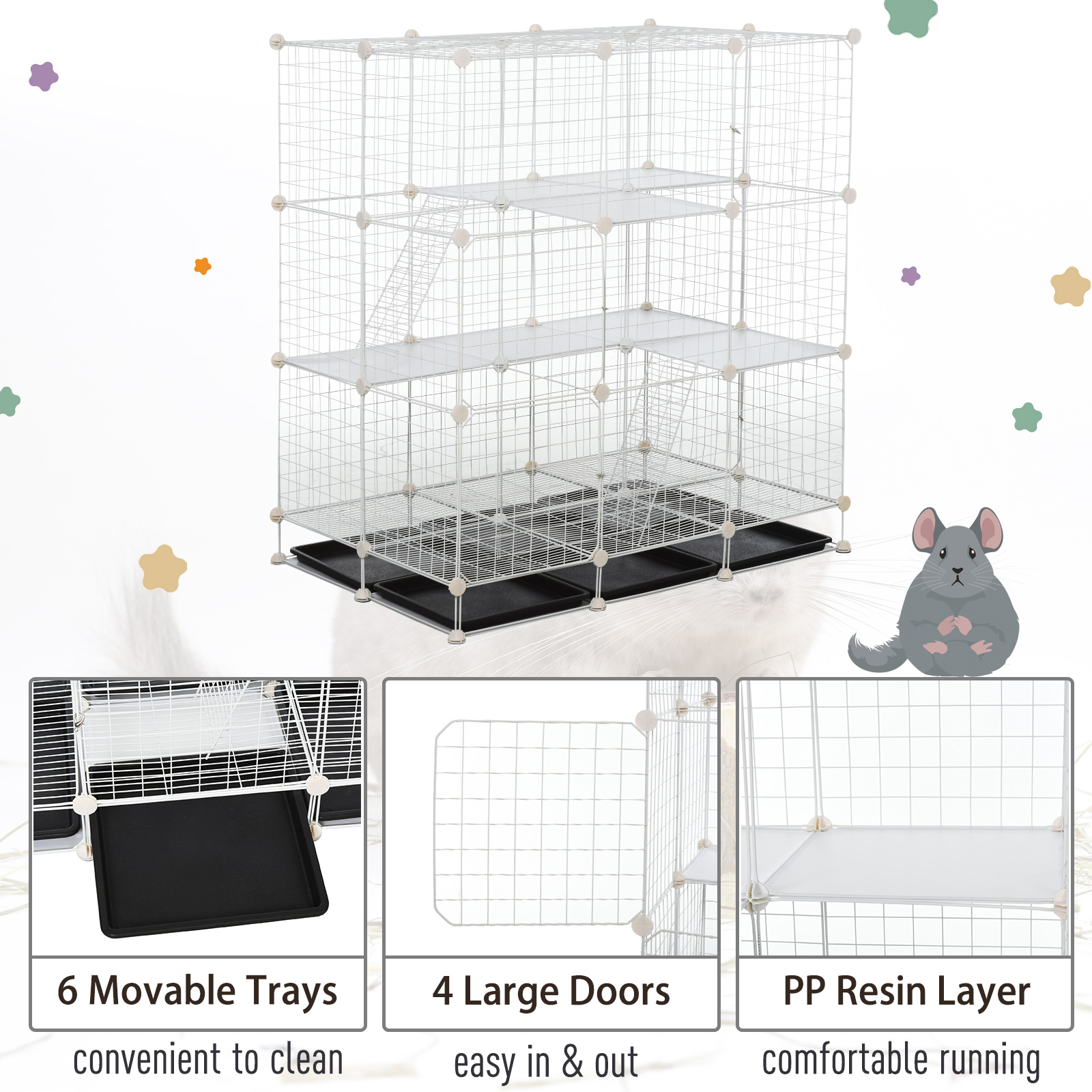 Amazon Com Pawhut Diy Pet Playpen Wire Rabbit Cage For Chinchillas Small Animals With 6 Independent Trays Black Pet Supplies from images-na.ssl-images-amazon.com About 7% of these are pet cages a wide variety of metal chinchilla cages options are available to you, such as material, feature, and closure. You have two options when it comes to cages for chinchillas. Adding ledges to the cage will also increase its usable space since chinchilla cages have more height to allow for climbing. Depending on your crafting skills, you can choose to make your own chinchilla ledges or buy them. Diy chinchilla käfig bauen (januar 2021). Diy chinchilla toys diy hamster toys chinchilla cage rat toys hamster house chinchillas cute hamsters bunny cages rabbit cages. Pet rat cages hamster cages cage chinchilla degu cage rat cage accessories diy bird cage mouse cage sugar glider cage bunny cages. Diy chinchilla toys cage chinchilla pet mice pet rats chinchillas pet rat cages.